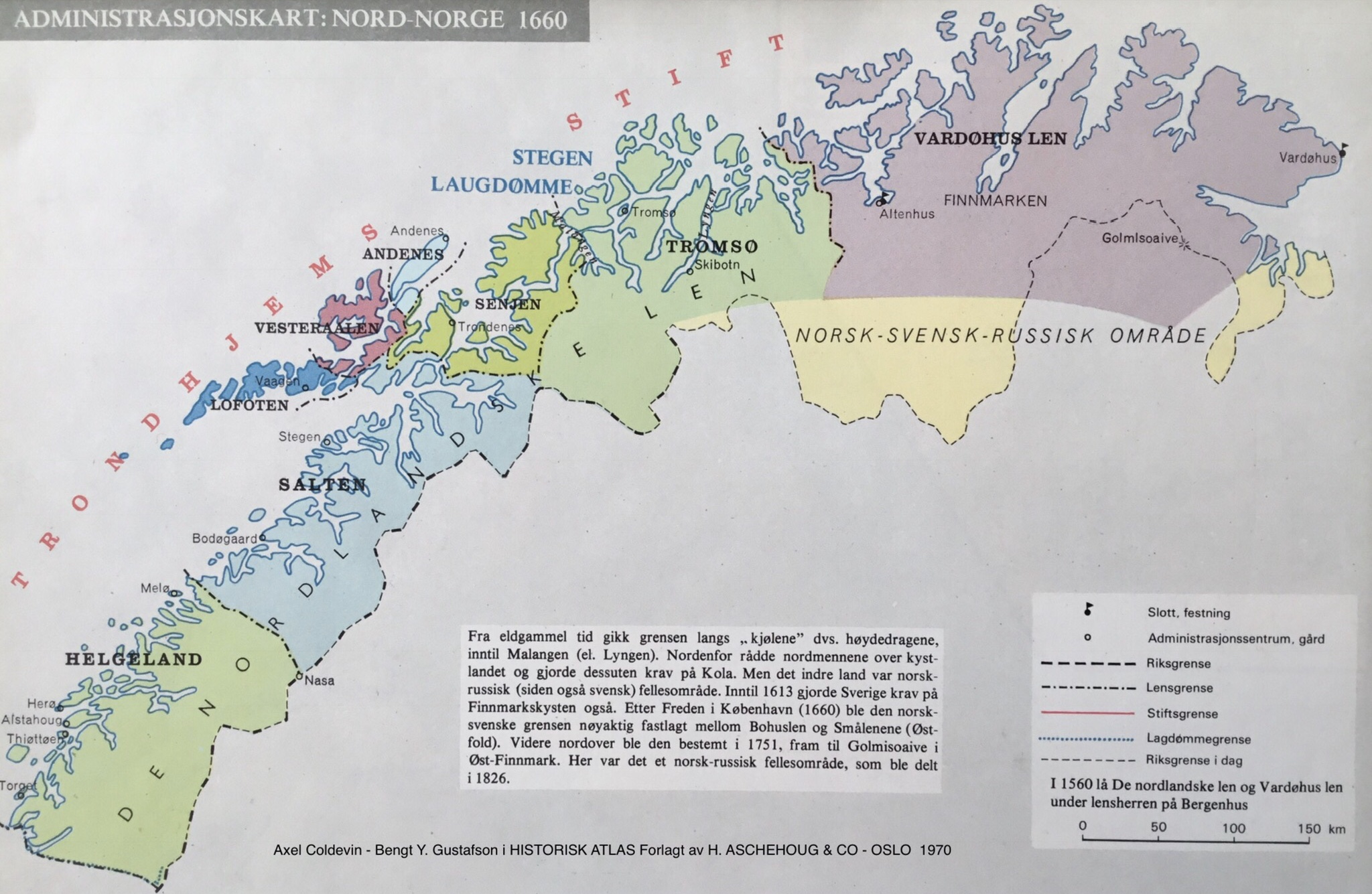Administrasjonskartet fra Coldevin, Axel og Gustavfson, Bengt Y. (1970) Historisk atlas, H. Aschehoug & Co, Oslo