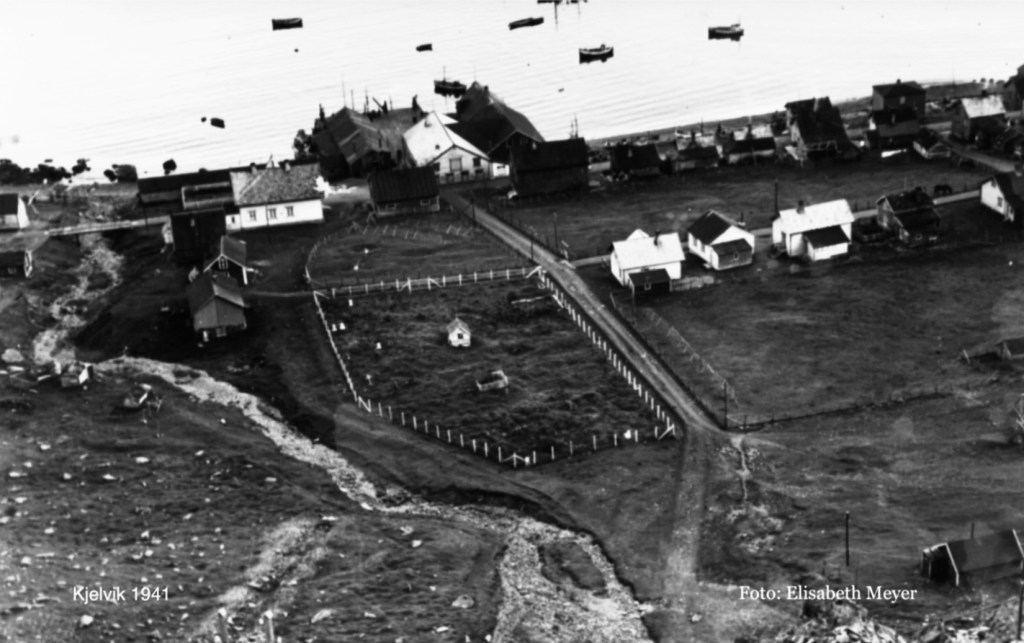 Kirketufta, midt på bildet, lå inntakt i 1941 da bildet over ble tatt. På bildet har vi hhv lærerboligen, kirkestua og skolen, tre hvite bygninger, med Ottar Olsen som kilde. Bildet ble tatt av Elisabeth Meyer da hun var i Kjelvik sommeren 1941.