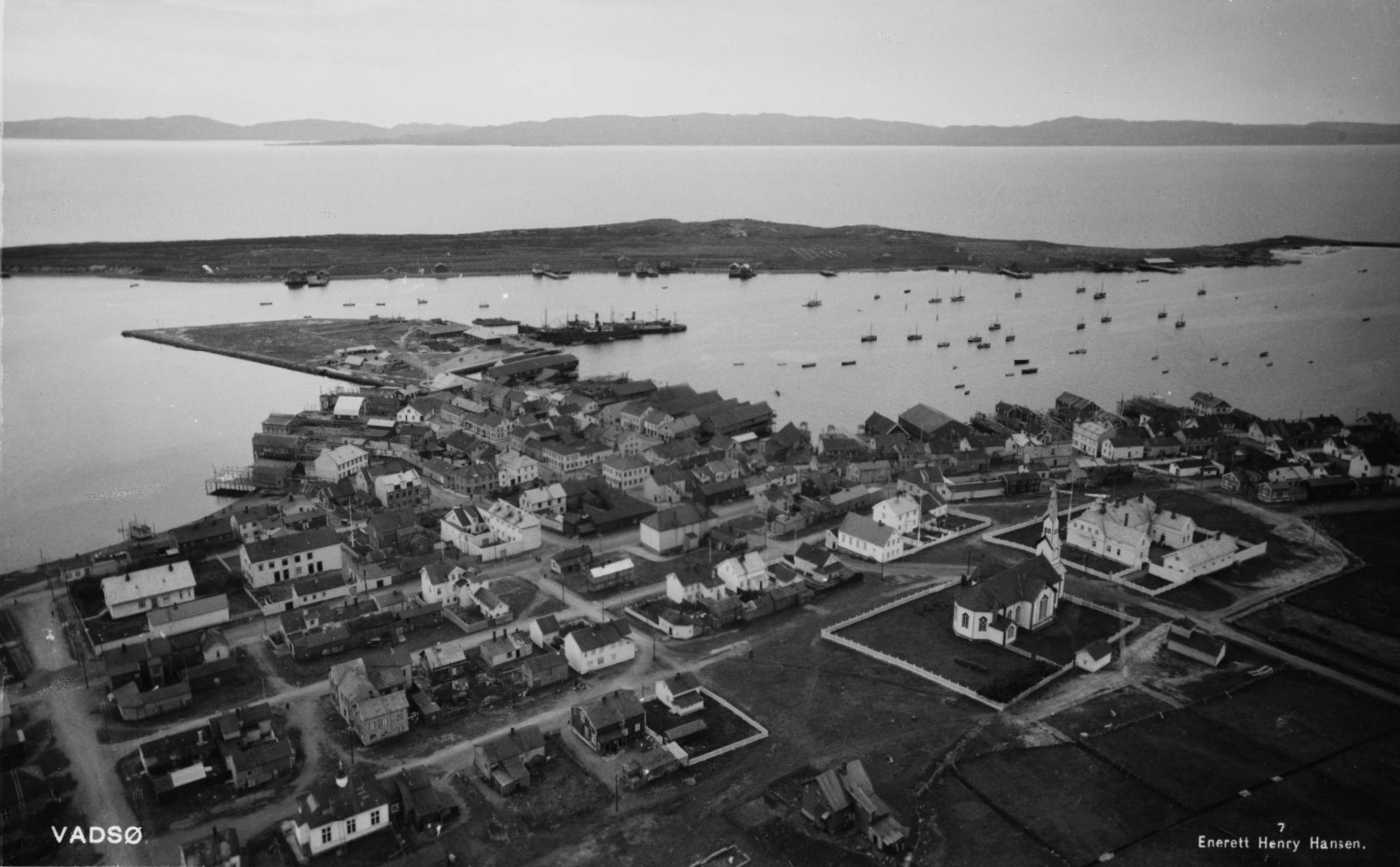 Vadsø ble fra nå av et viktig sentrum for handelen med russerne. Byen vokste og da vi kom til 1900, 65 år etter det, hadde byen ei befolkning på godt over tre tusen, eller mer nøyaktig, 3.368 innbyggere. På bildet under ser vi Vadsø i 1938, med Vadsøya, tidligere kalt Kirkøya.
