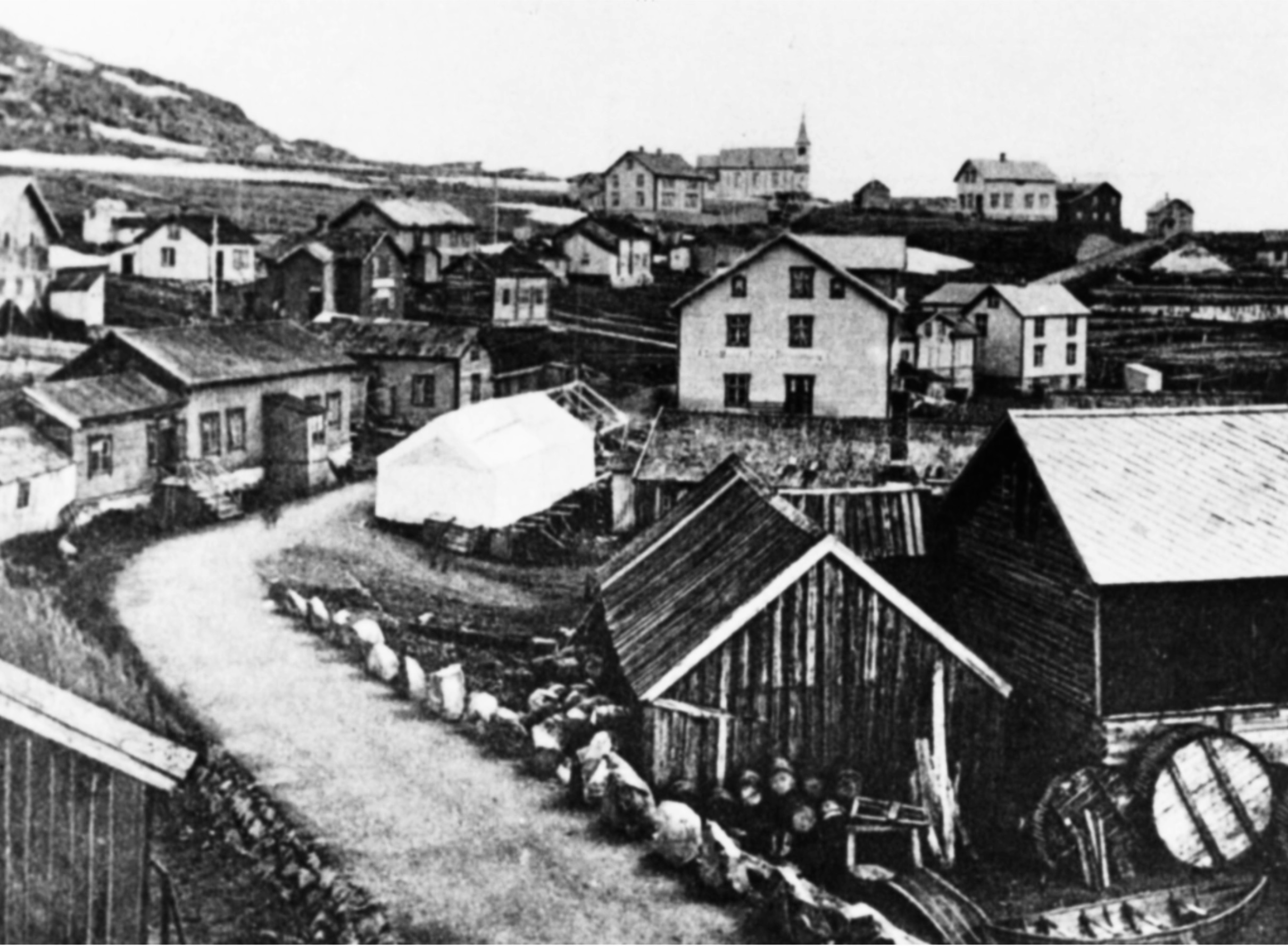 Hammerfest på et bildet tatt av Axel Lindal i 1880, et bilde fra Nasjonalbibliotekets samling