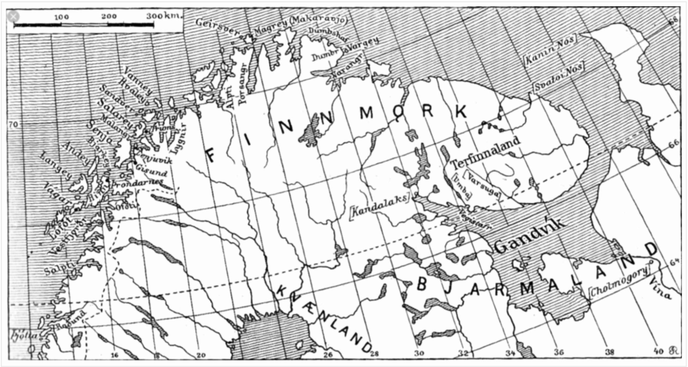 Det var til «det som i den gamle litteraturen» går under navnet Bjarmeland, Tore Hund i 1026 hadde reist på sin handels og plyndringsferd. Det vil si til landet sør for Kvitsjøen og oppover elva Dvina, i det som da hadde blitt Arkhangelsk guvernement.