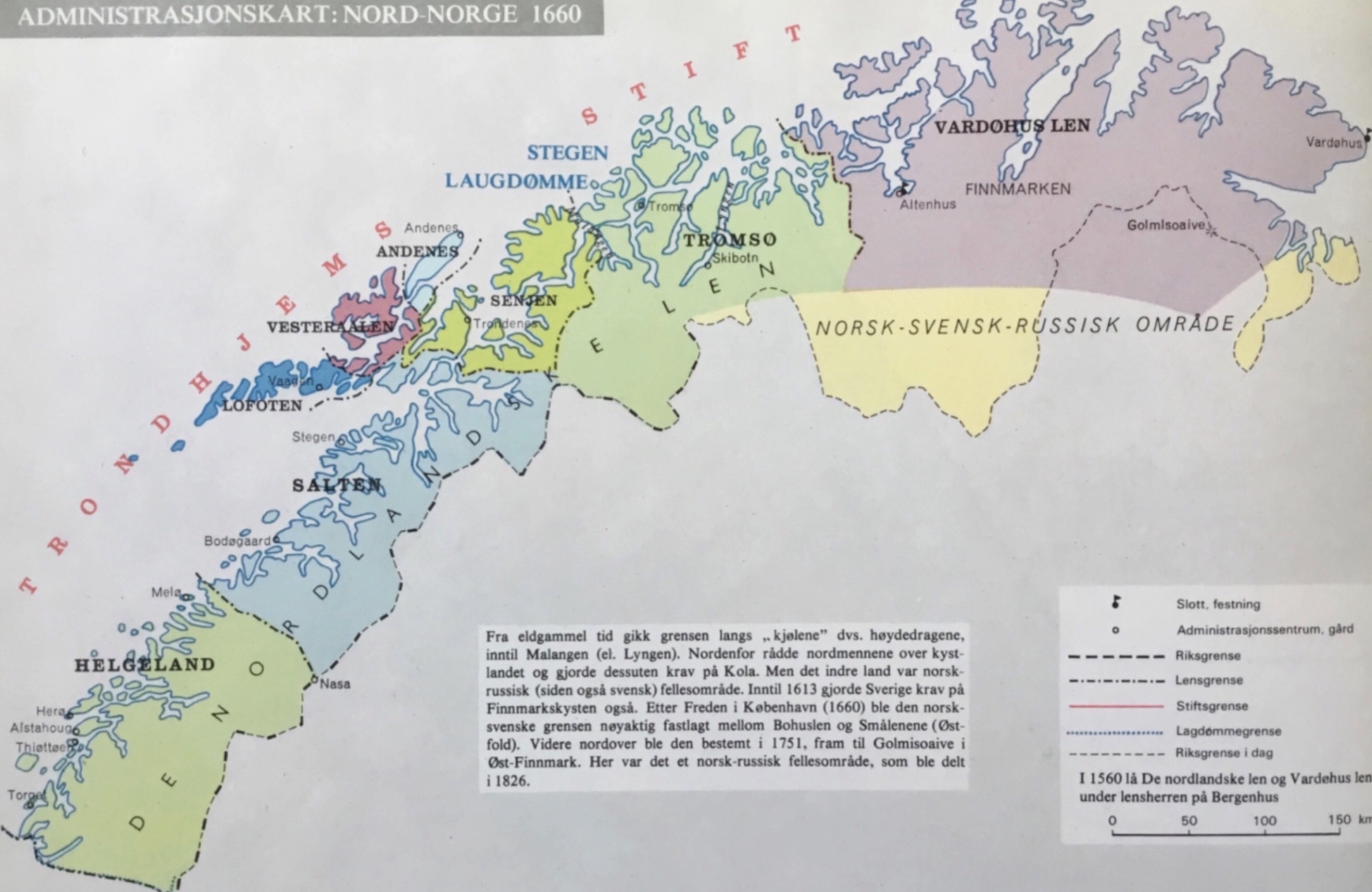 Vi ser de store områdene i nord der samer hadde sine store hjemmeområder. Som vi ser, har havet nord og øst for Varangerhalvøya og Kolakysten fått navnet Barentshavet, oppkalt etter nederlenderen Willem Barentz.