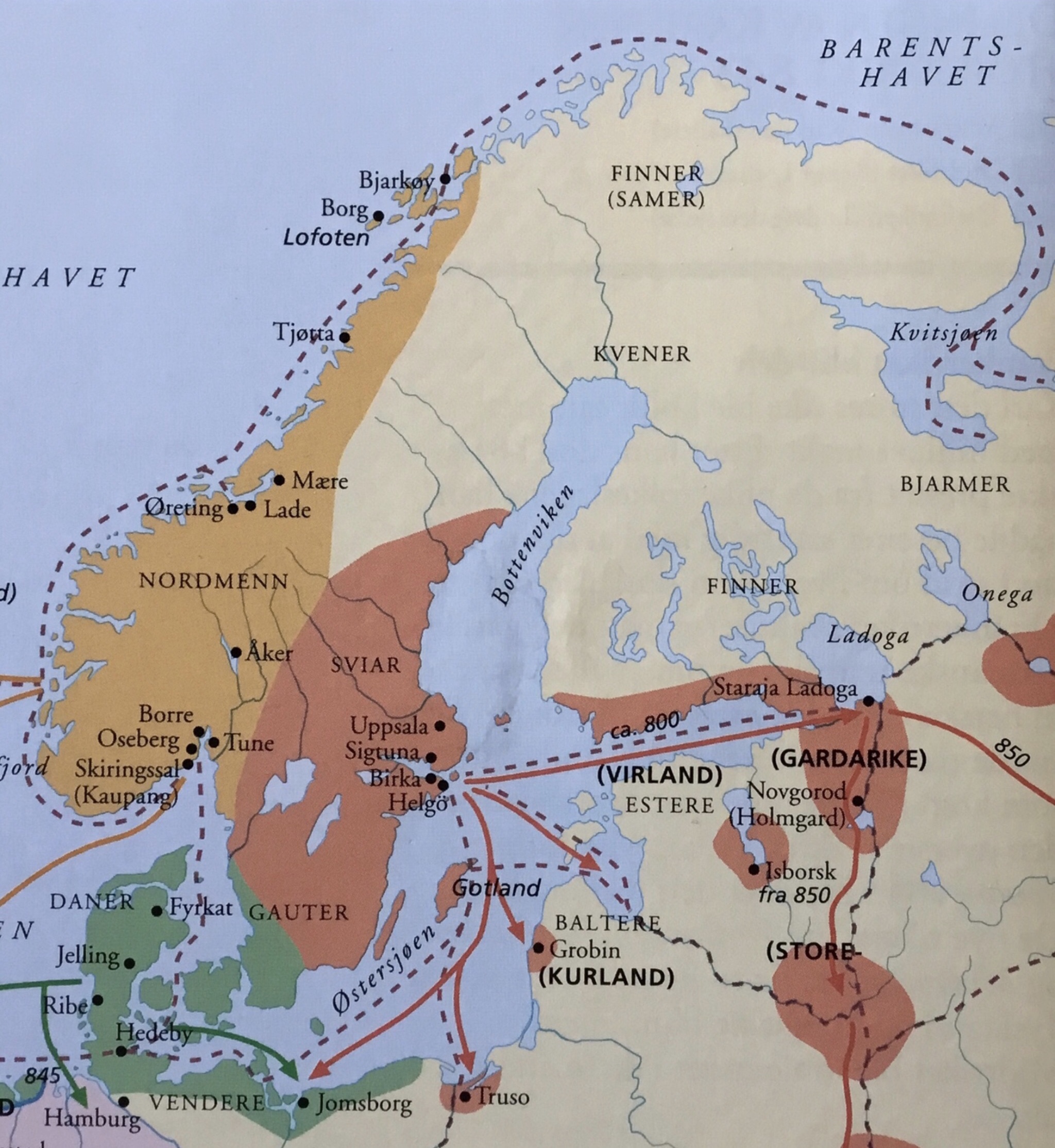 Et kart fra Cappelens historiske atlas, Redigert av Kåre Valle, J. W. Cappelens Forlag a.s, Oslo 1994